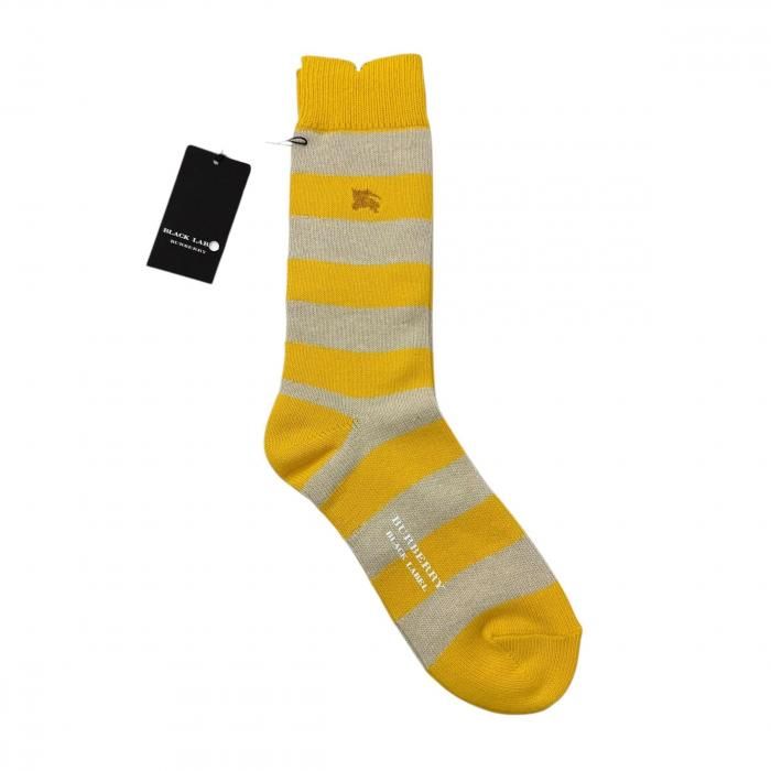 【新品】【アウトレット】 BURBERRY BLACK LABEL バーバリーブラックレーベル 靴下 ソックス (ボーダー)イエロー×ベージュ系 [size:23cm] 53702
