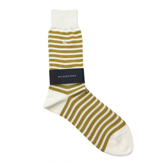 【新品】【アウトレット】 BURBERRY バーバリー 靴下 ソックス (ボーダー)ベージュ×ホワイト系 [size:25-26cm] 56644