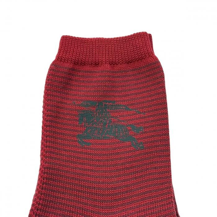 【新品】 バーバリーロンドン BURBERRY LONDON メンズ 靴下 ソックス (ボーダー×BIGホースマーク柄)レッド系 [size:25-26cm] 33615